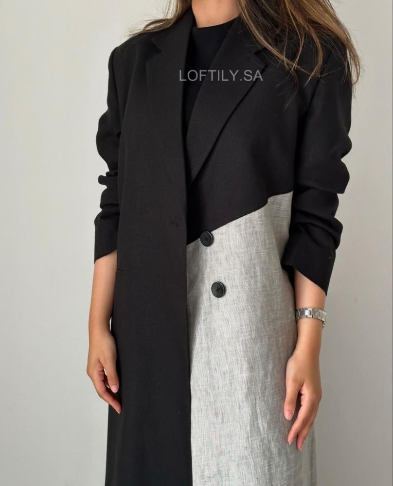 القماش: اللون الاسود لينن بيرر والرمادي لينن خيش